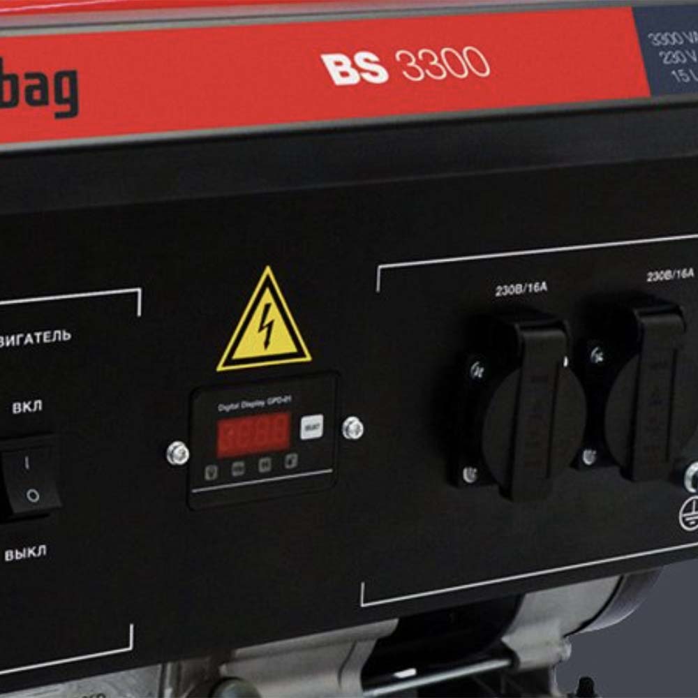Надежный топливный бак объемом 15 литров, изготовленный из прочной стали, оснащен указателем уровня топлива и фильтром-сеткой для защиты от загрязнений. Панель управления Fubag BS 3300 интуитивно понятна и оборудована двумя пыле-влагозащищенными розетками 220В/16А, а также системой защиты от короткого замыкания и перегрузки. Мультифункциональный цифровой дисплей позволяет контролировать напряжение, частоту и отработанное время, напоминая о необходимости своевременного технического обслуживания. Счетчики моточасов, индикатор низкого уровня масла и датчик, автоматически отключающий электростанцию при недостаточном уровне масла, обеспечивают дополнительную защиту и удобство эксплуатации.