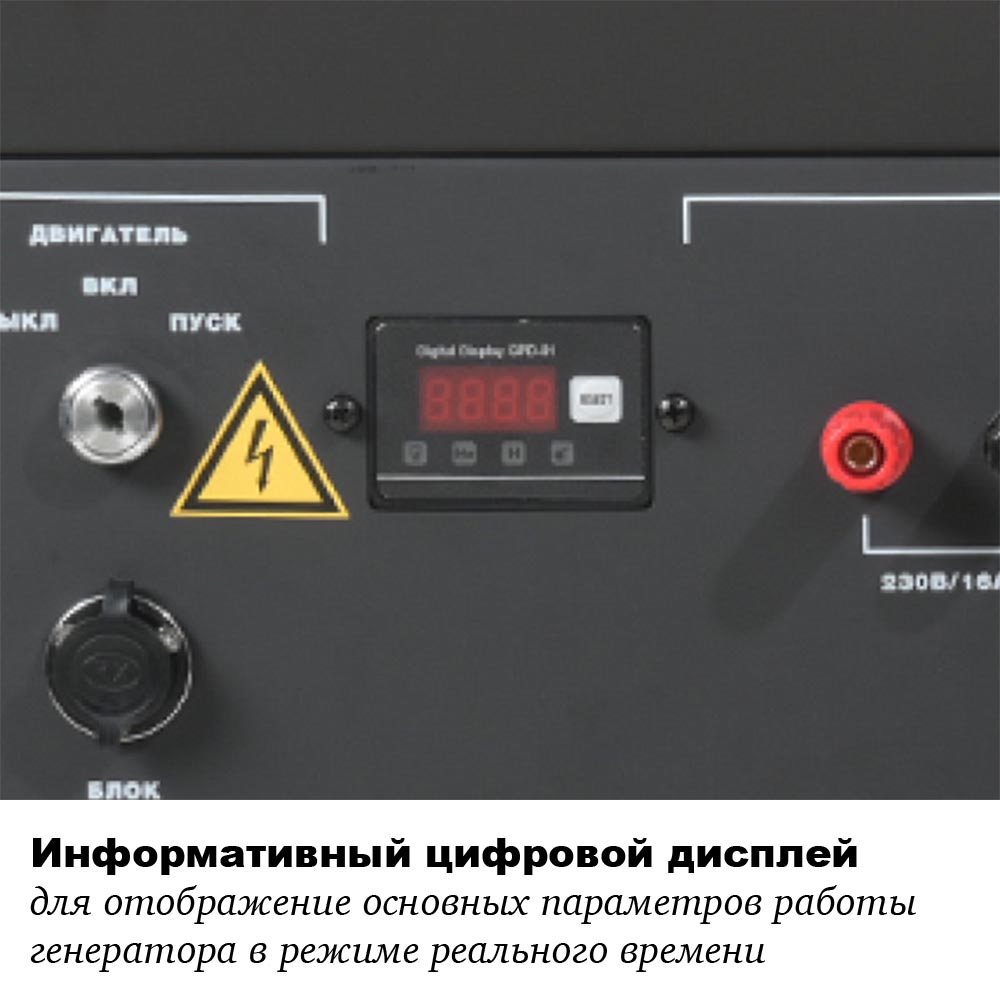 Мультифункциональный дисплей – ваш личный центр управления, отображающий напряжение, частоту, количество моточасов и индикацию низкого уровня масла.